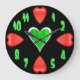 Denna vägg tar tid på är designad med stora röda hjärtor på varje av de fyra timmarna (12, 3, 6, 9), med en irländaregrönthjärta i dess centrerar. Gör en underbar gåvaidé för valentin dag och också Sts Patrick dag!