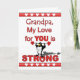 Gulligt valentin kort för daghälsning för en morfar/en farfar. En muskulös pingvin lyfter hjärta väger, och en skugga casts bak den. Det STARKA ord har brevnollan squished in i en hjärta för att forma. Pingvininslagtack till HGomez/Openclipart. Konst avbildar, och versen tar copyrightt på ©Shoaff Ballanger studior.