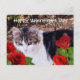 VALENTIN DAGKATT MED RÖD ROS HELG VYKORT