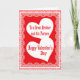 Ett rött kort med vithjärtor och snöre klipper för en underbar broder och hans partner