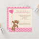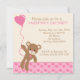 Anpassa denna söta valentinajubileumsinbjudan med en brun björn och en rosa hjärtformad ballong. © Cocoa Studio