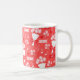 Valentindagen Flowers Chocolates Hearts Rosa Mönster på ett vitt kaffe mugg, dryck kopp.