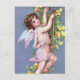 En charmerande vintage Valentine vycard med en söt ängel på en repstege framför ro bush.com.