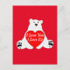 Trött tecknad illustration av en björn som håller ett rött hjärta. Text: I Kärlek, du och jag Kärlek USA.