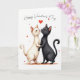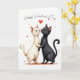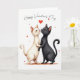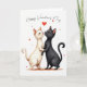 Svarta och vita katt dansar långsamt med varandra och hjärtan runt dem isolerade på vita för Alla hjärtans dag. Text kan redigeras.