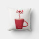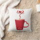 Dekorativ kudde visas i ett vitt färg med ett sött, glansande kaffepistomme av Valentine-typ i rött tryck. Anpassa det här objektet eller köp som det är.