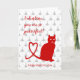 En berömd författare skrev Vilken underbarare gåva än en kattas kärlek. Kärlek finns i många former. Katten skapar en förklaring från kärlek med svan. Vem kommer att ha tur? Denna design visar en rödkattens silhuett över grått-bakgrunden i vita runda mönster-formade hjärtan. Använda den här produkten när du känner att du behöver skicka ett kärlek-meddelande till din älskling eller till något romantiskt tillfälle eller evenemang eller för att fira Alla hjärtans dag. Text kan vara personlig.