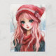 Ett bra exempel på en flicka som bär en röd hatt på en vinterscen.