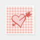 Dekorera alla hjärtans dag bord med en attraktiv "hjärta och pil" pappra blöjor. En rosa gingham-bakgrund som denna Alla hjärtans dag-platta tillför en liten roligt och sofistikering till din helgdag-dekoration.