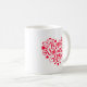 This ceramic coffee mug is shown with a Valentine greeting hearts print.