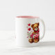 This ceramic coffee mug is shown with a cute Valentine teddy bear hearts print.