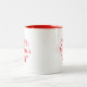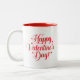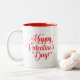 This ceramic coffee mug is shown with a Valentine greeting hearts print.