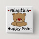 Alla hjärtans dag-knapp med en vacker brun nalle, röda hjärtan och text som lyder "Valentine Huggy Bear"!