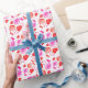 En unik akvarellkonst valentine kärlek fåglar på väg att kyssa presentpapper i nyanser av rosa, vit och röd. Idealisk presentinslagning för alla älskare på valentines dag för att ge en speciell gåva till en flickvän, fru, fästmö, vän eller älskad. Originalt fantasifull akvarellkonst och design av Sarah Trett.