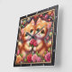 This adorable square wall clock features a heartwarming digital illustration of two fluffy ginger kittens nestled together. The kittens have large, expressive green eyes and are shown holding a small bouquet of pink roses. They are surrounded by a lush, vibrant garden of multi-colored roses in shades of red, pink, and yellow, accented by whimsical floating hearts and sparkling floral patterns. The artwork is framed by a modern black wood-textured border with bold white numeric markers for easy timekeeping. This functional piece of home decor combines high-quality whimsical art with practical utility, making it a perfect gift for cat lovers, Valentine Day, or as a charming addition to a child nursery or playroom. The rich, warm color palette and sweet character design provide a cheerful focal point for any room.