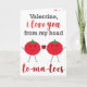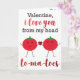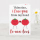 Detta Alla hjärtans dag-kort är sött och punchy med frasen "Jag älskar dig från huvud till-tomater" med tomater som pojken och flickan i kärlek. Skriv din egen speciella hälsning inuti kortet till din kärlek.