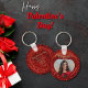 Bekvämt rödfärgad och bränd rött till orange mönster med flytande hjärtan och en hjärtformad platshållare för ett foto av din älskade en, ditt par eller din familj. Baksidan av nyckelringen har anpassade text. Hela paletten färg är röd med guld typografi. Du kan enkelt ändra all text och ersätta bilden så att den blir din. Underbar idé om en liten uppskattning som kan göras med ett personlig foto och hälsning. Glad Alla hjärtans dag!