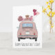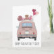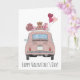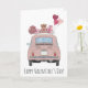 Ett valentinkort för bil älskare. En retro Fiat 500 med gåvor, nallar och ballonger