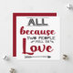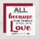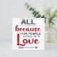Det här vackra hälsningskortet är perfekt för Alla hjärtans dag, födelsedagar eller årsdagar, och det innehåller texten "All eftersom två människor föll i kärlek", skriven i rött och mörk grått modern typsnitt mot vit bakgrund och dekorerad med små hjärtan och en grått-pil.