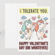 Greeting card featuring two unicorns and a sarcastic Valentine’s Day message about tolerance and relationships. Blank inside for a personal note. Suitable for partners, spouses, or long-term relationships.