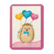 This charming Valentine’s Day illustration features an adorable hedgehog holding colorful heart-shaped balloons spelling out “I Love You.” Soft textures and cheerful colors create a warm, lighthearted card that’s perfect for expressing affection in a sweet and playful way.