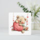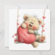Send love with this adorable Valentine’s Day card featuring a fluffy teddy bear on a swing, holding a red heart-shaped cushion that says “Happy Valentine’s Day.” The cheerful design radiates affection and festive charm. The reverse side includes a heartfelt greeting and the sender’s name, making it a personalized keepsake. Matching envelope sold separately.