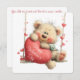 Valentine Teddy Bear on Swing with Heart Julkort
