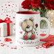 Valentine Teddy Bear with Rose and Hearts Mugg