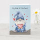 Fira kärlek med det här charmerande Alla hjärtans dagskort med en handmålad vattenfärgad gnom. Den är tryckt i blå jeans och en subtilt strimmig denim-stil hatt, gnomen har ett rött hjärta med ett större hjärta som är sött från hatten. Små hjärtan flyter runt den mjuka bakgrunden, vilket ger en liten fingertryckning. Perfekt för någon som tar med glädje och kärlek i ditt liv, det här kortet parar sin mysiga utformning med ett uppriktigt budskap som kommer att få vem som helst att le. Idealisk för alla som uppskattar en blandning av söthet och enkelhet på Alla hjärtans dag.