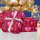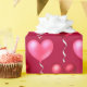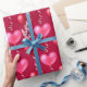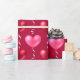 Den här Alla hjärtans dag med pappra omslutningar har en roligt mönster av stor och liten hjärtformad rosa och röda ballonger med silver-strömmare på röd bakgrund.