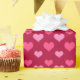 Den här Alla hjärtans dag med pappra omslutningar har en mönster av stora och små hjärtan i två skuggor av rosa med röd bakgrund.