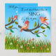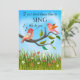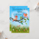 Lustigt och färglöst kort på Alla hjärtans dag med söt love birds i en lycklig vår-ängsskugga.