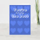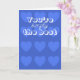 Alla hjärtans kort med mönster av hjärtan. Utsidan av versen är "du är fortfarande den enda". Insidan är "Glad Alla hjärtans dag".
