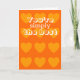 Orange Alla hjärtans kort med mönster i gultens hjärtan. Utsidan är "Du är helt enkelt bäst". Insidan är "Glad Alla hjärtans dag". Kommer även i blått, med ett annat teckensnitt.