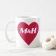 En modern fet gåva till Valentindagen. Röda och rosa hjärtan och djärv monomgramtext initialer deklarerar kärlek! Det här kaffet mugg är en utmärkt valentinpresent till make, pojkvän, hustru eller flickvän. Anpassa enkelt till par initialer. Om du behöver hjälp med att anpassa den här produkten kan du använda meddelandeknappen nedan.