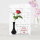 Red rose in a black vase on a brick wall pattern for Valentine's Day.