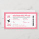 Valentines day Travel Rosa Flight Boarding Pass Personlig Alla hjärtans dagskort i Namn har ett anpassningsbarnas boardingkort i modern, vit manustypografi accentuerad med ett modernt gräns i kärlek med rosa, vitt och persikohjärtan i kärlek. Designad av © Evco Helgdagars www.zazzle.com/store/evcoholidays