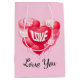 Papper presentväska visas på rosa med ett hjärtslag för Alla hjärtans ballonghjärtan. Anpassa den här presentväskan eller köp som det är.