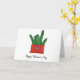 Det här vikningskortet är tryckt med en hjärtans dagsteckendesign med en levande kaktus i handformen "I Kärlek You". Meddelandet "Jag sitter fast på dig" är tryckt på insidan.
