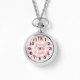 Kvinnoklockan har en modern Alla hjärtans design av utspridda röda hjärtmaskar på en vit fält.