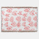 Kastfilten har en modernt Alla hjärtans design av spridda röda hjärtmaskar på en vit fält.