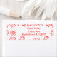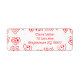Dessa returetiketter har en modern Valentindesign i mitten av århundradet av utspridda röda hjärtmaskar på en vit fält.