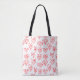 Den här väskan har en modernt Alla hjärtans design av utspridda röda hjärtmaskar på en vit fält.