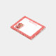 Post-it-Notes shown in a red and white Valentine hearts and teddy bear print.