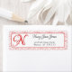 Det finns mallar så att du enkelt kan anpassa den ursprungliga mallen, namn och adress. Röd "Kärlek"-typografi är utspridd i ett slumpmässigt mönster för en sömlös heltryckning. Det finns ett grafiskt vitt band i mitten, finare-skriptet börjar på den lämnat och returadressen på högerna. De röda och vita etiketterna kommer att se elegant på kuverten för dina hjärthjärtdagsinbjudningar och tackkort.