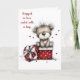 Valentinskort med teddybjörn i presentlåda och dikt på baksidan