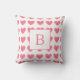 Valentines Watercolor Rosa Hjärtmönster Monogram Kudde