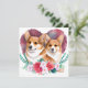 Valentineser Corgi Pair, Heart, Flowers, Watercolo Julkort