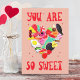 Valentineserna "Du är så söt" illustrerar godiset med röd handskriven text. Originalteckningar av Caroline Bonne Müller