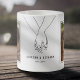 Styrt par valentines day mugg med en linje teckning av ett par som håller händer, två foton som du kan ersätta med ditt eget, par namn, och det år som har inrättats.